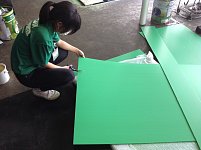 ピット側のガラスを梅雨仕様にチェンジしました(๑˃̵ᴗ˂̵) 先日、職場体験に来ていた中学生の子達にお手伝いしてもらったやつです!ありがと〜♪