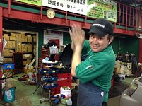 作業終了後は必ず手を洗います。 オイルなどの油も取れる洗剤です。 冬場は手荒れに注意が必要です。 萩原さんの手を洗っている写真です。 カメラ目線です(^◇^;)