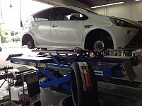 当店のアライメントテスターは大口径ホイール装着にも対応しております 他店で対応出来ない又は断られたなどご相談下さいね。 ただし車検対応のお車のみの取扱店となりますのでよろしくお願いします。