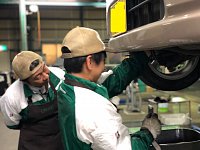 ニャットがオイル交換を教わってました! 先輩が付きっきりで教えていますので、ご心配せずお任せください!