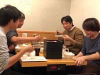 新しく入ったアルバイトの『せな』と『かなた』の歓迎会をしました! カメラ目線の店長が何か企んでいる用に感じますね・・・。笑
