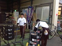 本日のタイヤ保管サービスの作業済みタイヤを 整頓していました。 アルバイトのグエンですが、入社1ヶ月で、後輩が出来ました。 晴凪(せな)君です。 イケメンです!