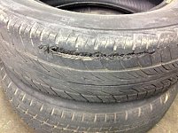 タイヤのヒビを放っておくと、このようにタイヤが割れてしまうこともあります・・・。 走行中におきたら怖いですね・・・(;O;)