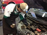 お車の点検実施中です!! エンジンルーム内もですが、下廻りもチェック致します! 下廻りにある金属部品のサビを確認し、特殊なコーティングを塗布します! 詳しくはスタッフまでお問合せください! 上の写真 (施工前) 下の写真 (施工後)