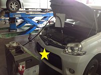 お車の点検実施中です!! エンジンルーム内もですが、下廻りもチェック致します! 下廻りにある金属部品のサビを確認し、特殊なコーティングを塗布します! 詳しくはスタッフまでお問合せください! 上の写真 (施工前) 下の写真 (施工後)