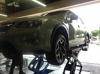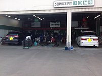 左側のエスティマが履き替えで、右側のエスティマがアライメントの測定です(^_^) 同じ車種が並ぶと写真撮りたくなりますね!