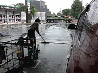 今日は水曜日ですが元気に営業中です! 台風接近中ですが元気に営業中です! 加瀬さんが濡れたピットを元気に拭いてます!