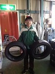 タイヤを整理しています。 今日もニャットくん頑張っております!!