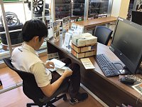 来店が落ちついてる時にメンパス 「タイヤ館手帳」の準備をしてくれる 中澤さんの姿です。 いつでも、メンパス「タイア館手帳」はお客様に渡せる状態ですね( ̄∇ ̄) 素晴らしい w