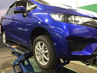 ホンダのフィット3です。 お持ちのスタッドレスタイヤへの履き替えです。 ここ最近の気象は異常が多いので お持ちの方は出来るだけ早めに装着して備えましょう。 12月になると、作業予約もいっぱいになるので 大変混みあいますので、是非今月のうちに!