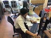 カメラを向けると突然の笑顔( 一一) 何があったのでしょう? 手元をよく見てみると、伝票に大きな「×」が・・・ 書き損じたみたいですね。 笑ってごまかせないと察知すると 笑顔がなくなって、プンプンモードですね。 がんばって書き直しお願いします(*´▽`*)