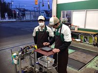 先週から入社した中澤さんにいろいろ教えている哉多です。 中澤さんは車業界で16年以上の経験者で 即戦力なので助かります! これからの時期大変混雑するので、少しでも作業の待ち時間を短縮して お客様をお待たせしない様、現在のメンバーで奮闘します!