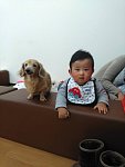 常連様と一緒に来た愛犬とのツーショットです! 前のお店からのお客様で、粒ちゃんが生まれた時に お祝いも頂きましたので、ご来店すると聞いて 早速かみさんに伝えて来てもらいました。 多分こんなに近くで動物と触れ合うのは初めての粒ちゃんです!