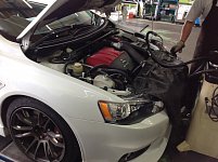 本日はランサーエボリューションXのエンジンオイル交換です。 ホント、いい車です。(私も持ってます) こちらのエンジン4B11(T)はモンスター級のエンジンですので、純正の粘度より少々固めの方が熱ダレしにくくお勧めです。今回は「ナノチタン 10W-50」を使用します。