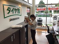 空気圧点検実施中のビル君です。 お盆でおでかけのお客様のお車です。 高速道路など普段とは違う使い方なので ちゃんとメンテナンスしておかないと不安になります。 お客様の安心の為、心を込めて点検してます。