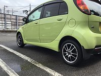 本日は ミツビシ アイ i にアルミホイールを取り付け致しました サイズは フロント 15X45 43 リア 15X55 43 JPスタイル クレーヴァになります 素敵なドレスアップですね 参考にして下さい