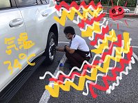 気温34度デス 今日もゴシさん、暑い中頑張ってます\\\\٩( 'ω' )و //// エアーチェック後のホイール清掃をしているところです。 ファイト ! ٩(๑❛ᴗ❛๑)۶