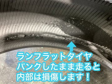パンクしても走行可能なランフラットタイヤですが、パンクした状態での走行後だとタイヤの内部は損 傷してしまいますのでタイヤ交換が必要となります。ランフラットだから大丈夫って思っている方 限度を超えるとタイヤバーストにも繋がります。 タイヤ在庫が無い場合も最寄りの営業所から引き上げ当...