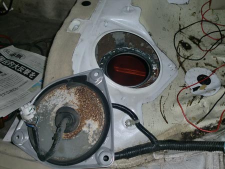 その部品は、燃料タンクの中に有る為タンクの中の部品を脱着(3枚めの画像)