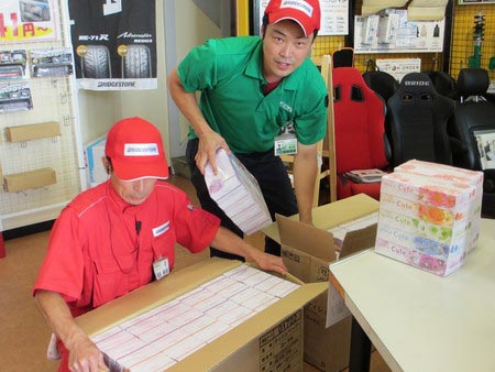 残暑お見舞い申し上げます ポスト 2015年8月22日 と、いうわけで残暑のご挨拶、お客さまに感謝をこめてタイヤお買い上げ本数に合わせて、ティッシュのプレゼント中です。おいしいコーヒーもありますので、ぜひご来店ください(^o^)丿 担当:ニシムラ