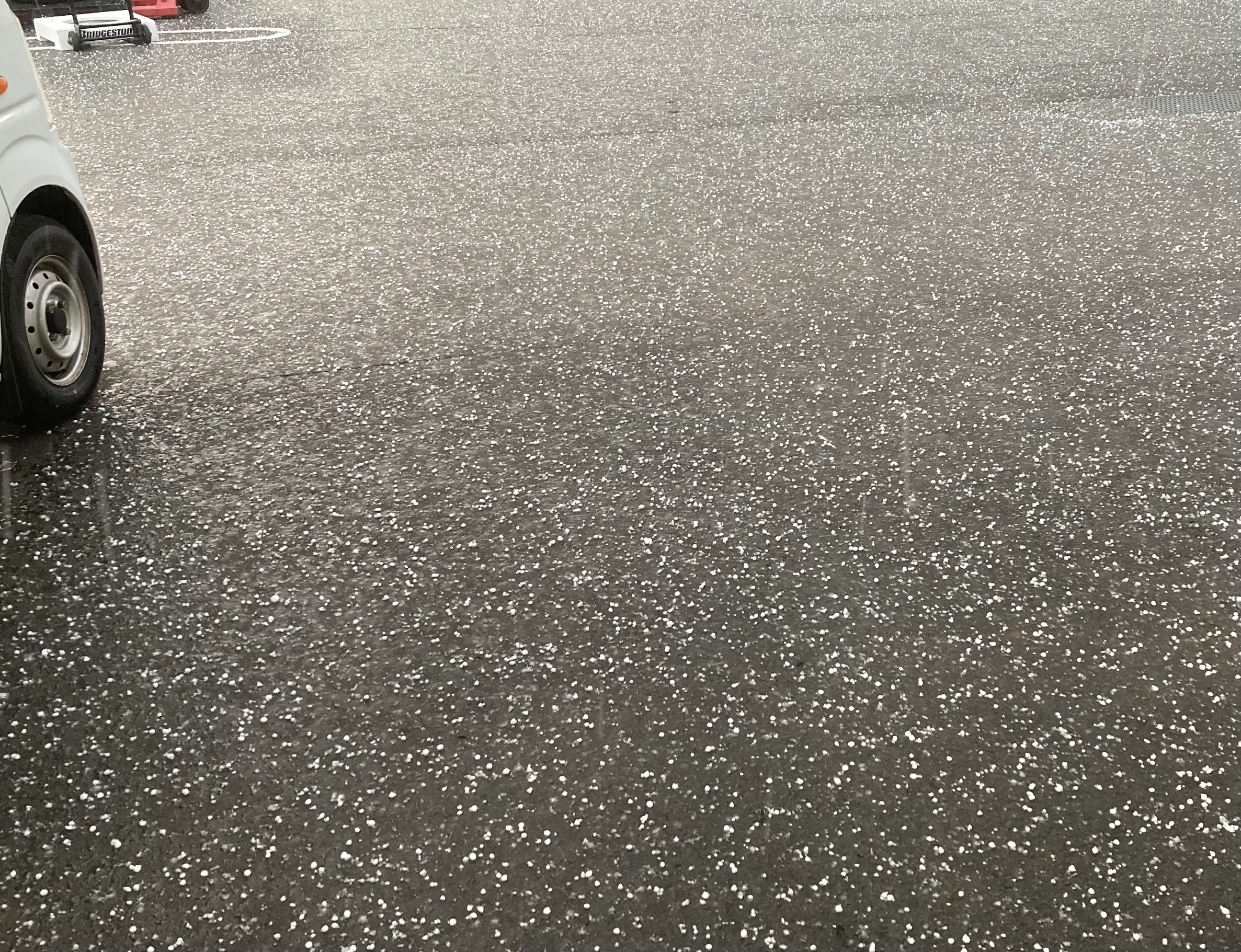 雨が降ってきたーと思ったら、1~2センチほどの氷がバタバタ降ってきました。