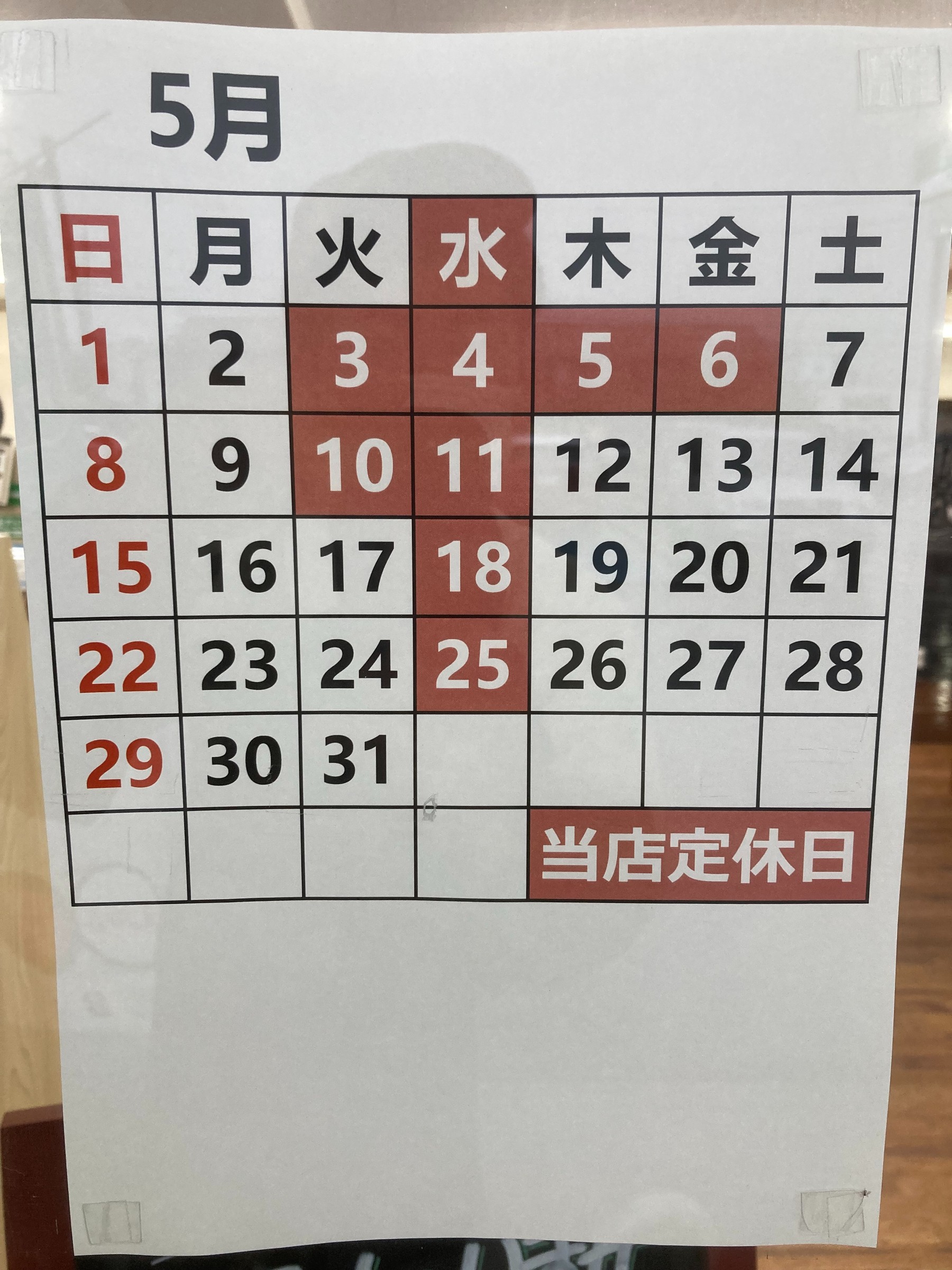 5/3から6まで定休日となりますのでご来店時はご注意ください。