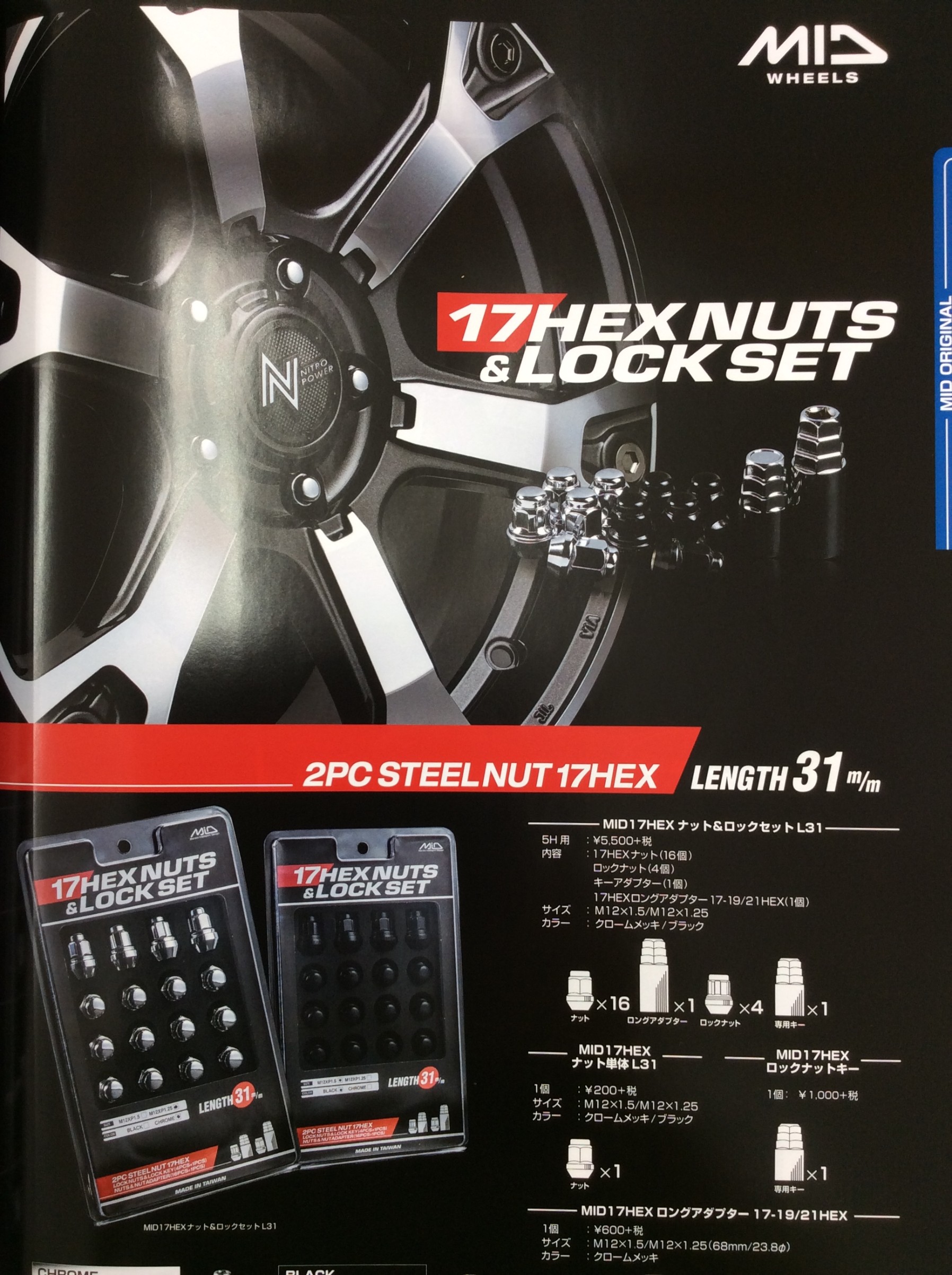 17HEXという細いナットですので、アルミホイールのナットホールに傷がつきにくい設定です。