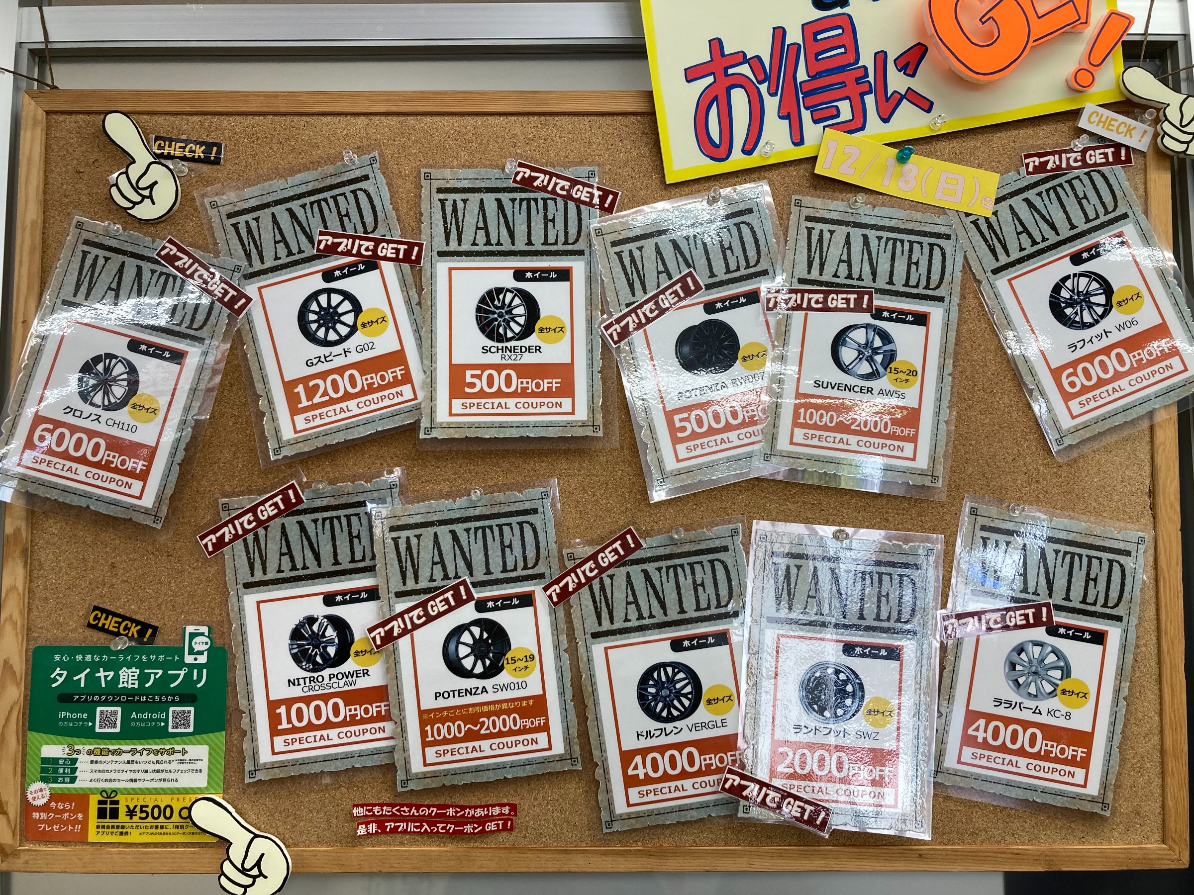 一例ですが、ホイールをご購入する時に使えるクーポンなどございます。