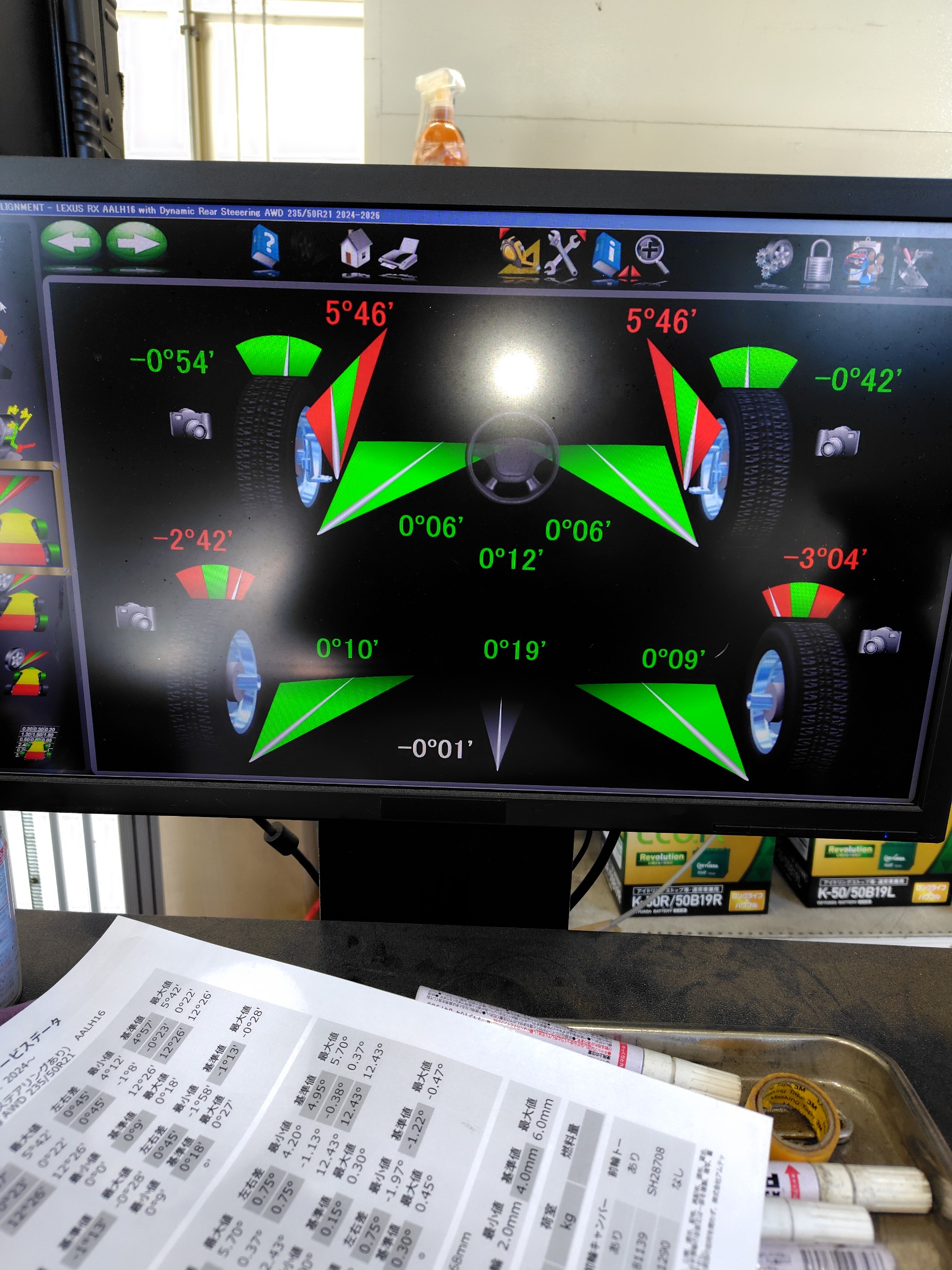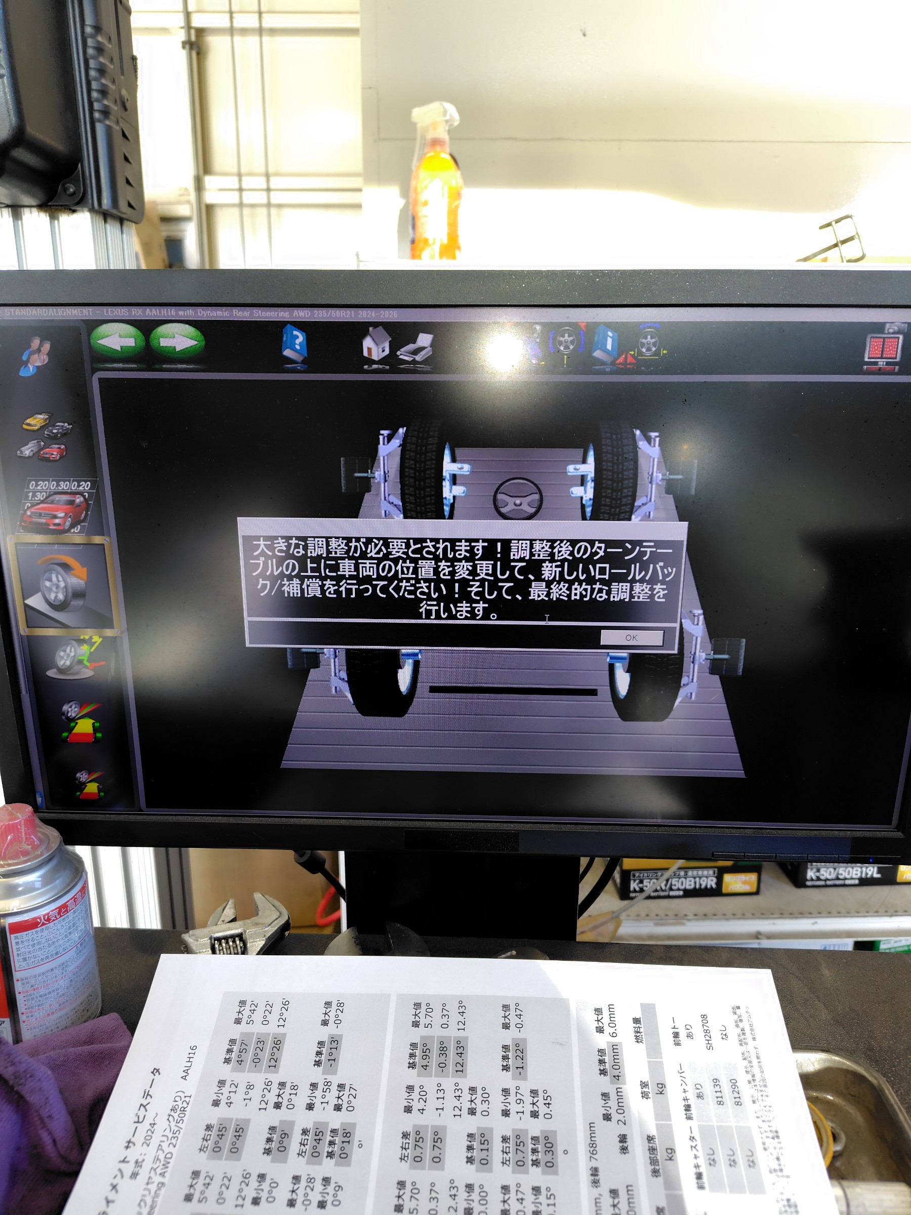 レクサス RX500でアライメント