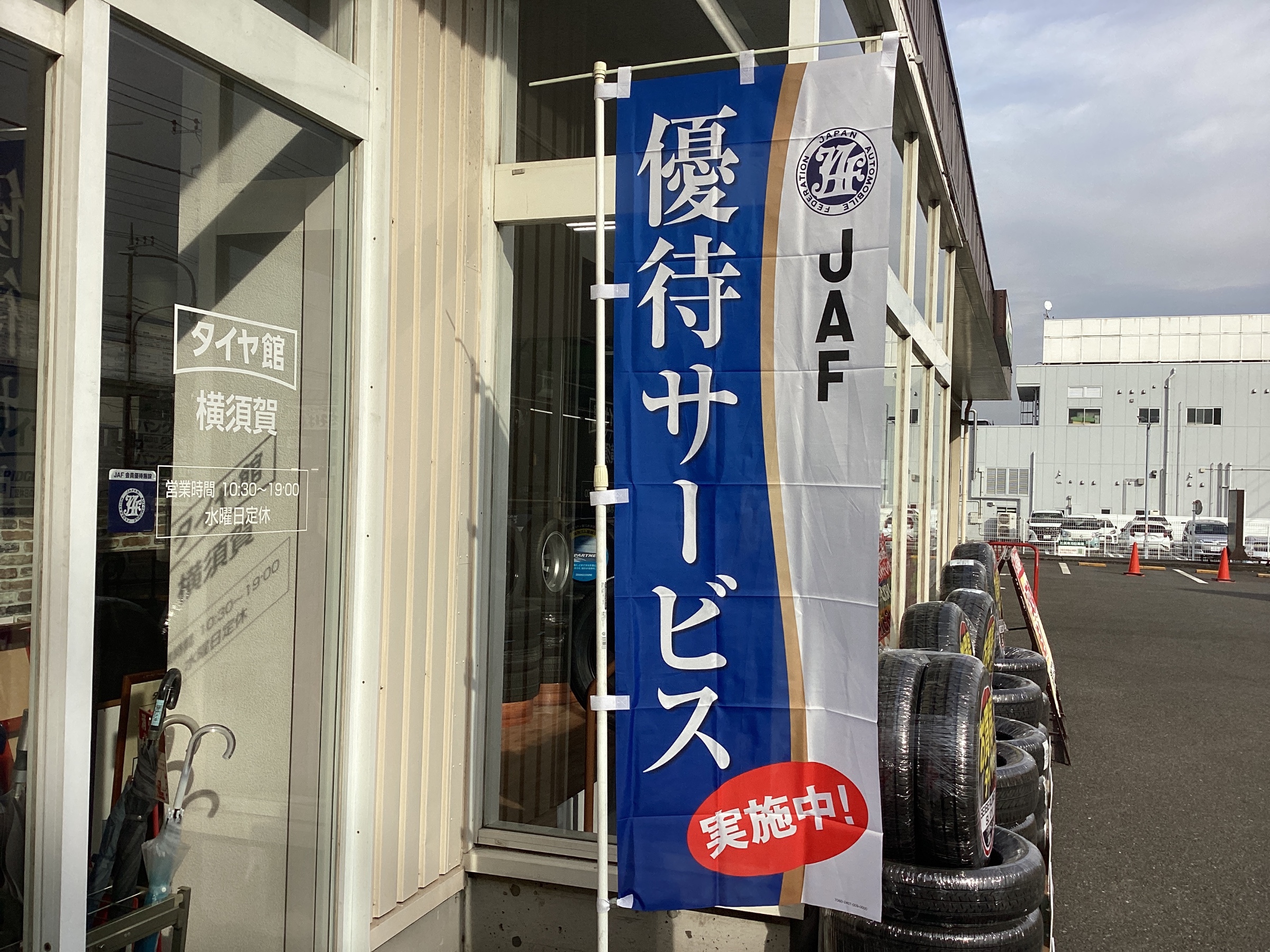 タイヤ館横須賀店ではJAF会員優待サ-ビス実施中です!