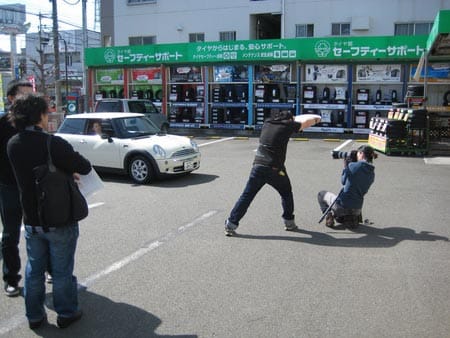 風が強い中、駐車場での撮影は大変そうでした(>_<)