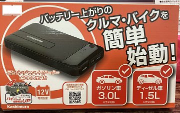 みなさまこんにちは! 今回はお車積んで置くと安心グッズのご紹介です。 お車のバッテリーは夏場&冬場にトラブルが多いです! 万が一バッテリー上がりになってもこれが有れば安心です。 (状態によってはエンジンが掛からない事も有ります) 私も自分の車には積んで有ります。 何度かこれに助けら...