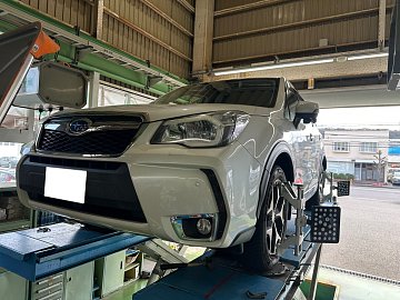 今回はフォレスターでアライメント調整です。 ハンドルセンターのズレが生じているための調整になります。 緑色の数字が正常の数値になり赤色の数字がズレが生じている部分になります。 今回調整としてはフロント、リアのトゥー4箇所の調整です。 フロントは赤丸の部分を緩めて調整します。 リアは...