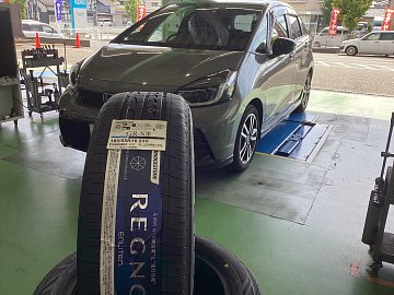 みなさまこんにちは♪ 先日HONDA フィットでタイヤ交換&アライメント調整をおこないました。 タイヤはお客様指定のレグノGR-XⅢを装着です。 以前も違う車種の時に装着されていてこのお車でも タイヤ交換する時にはレグノとお決めになっていたそうです。 交換前のタイヤは新車購入時から使用されてい...