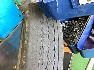 パンクしてしまい走行不可になってしまった為レッカー車で運ばれてきました タイヤの側面をぶつけてしまい、そこから空気漏れが発生していました。 タイヤのゴムがちぎれてしまっています。 タイヤの内側の状態を、確認するとゴムが剝がれてボロボロになってしまっています。 新しいタイヤを組み付...