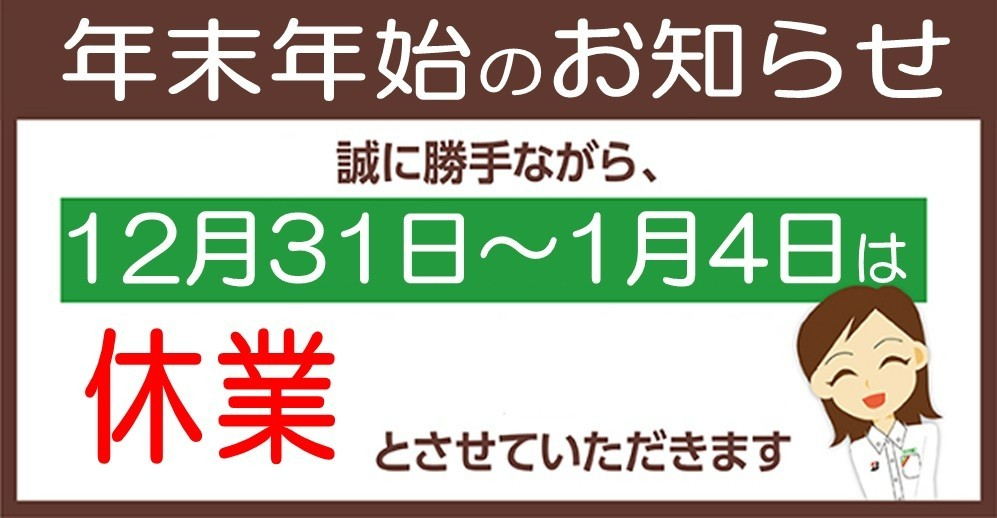 年始の定休日もございますのでお気を付けください。