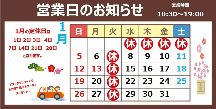 1月定休日のお知らせ
