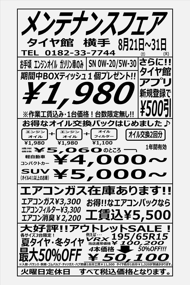 本日よりタイヤ館横手から新聞広告がでております!