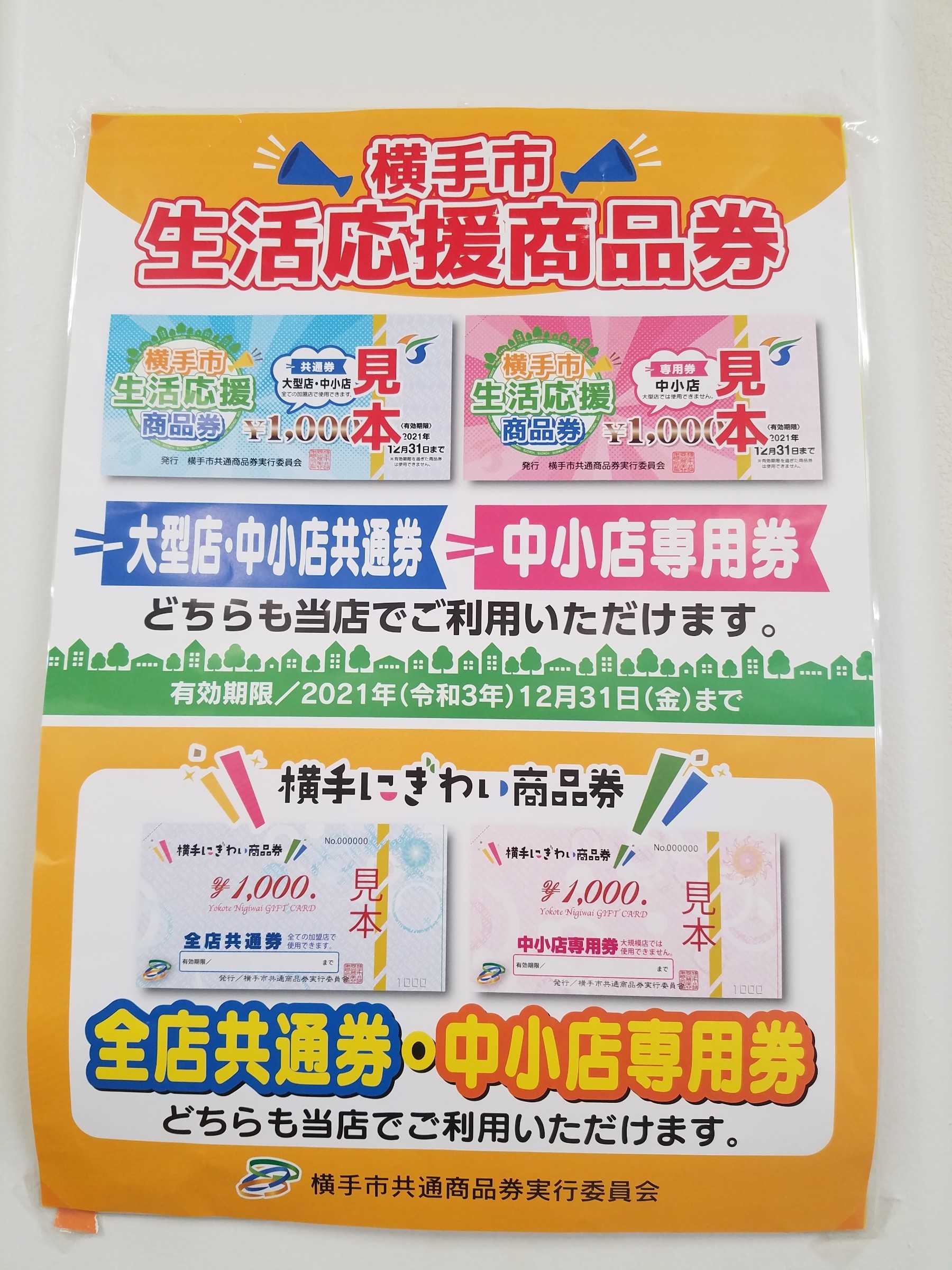「横手市生活応援商品券」の有効期限は、2021年12月31日までとなっております。