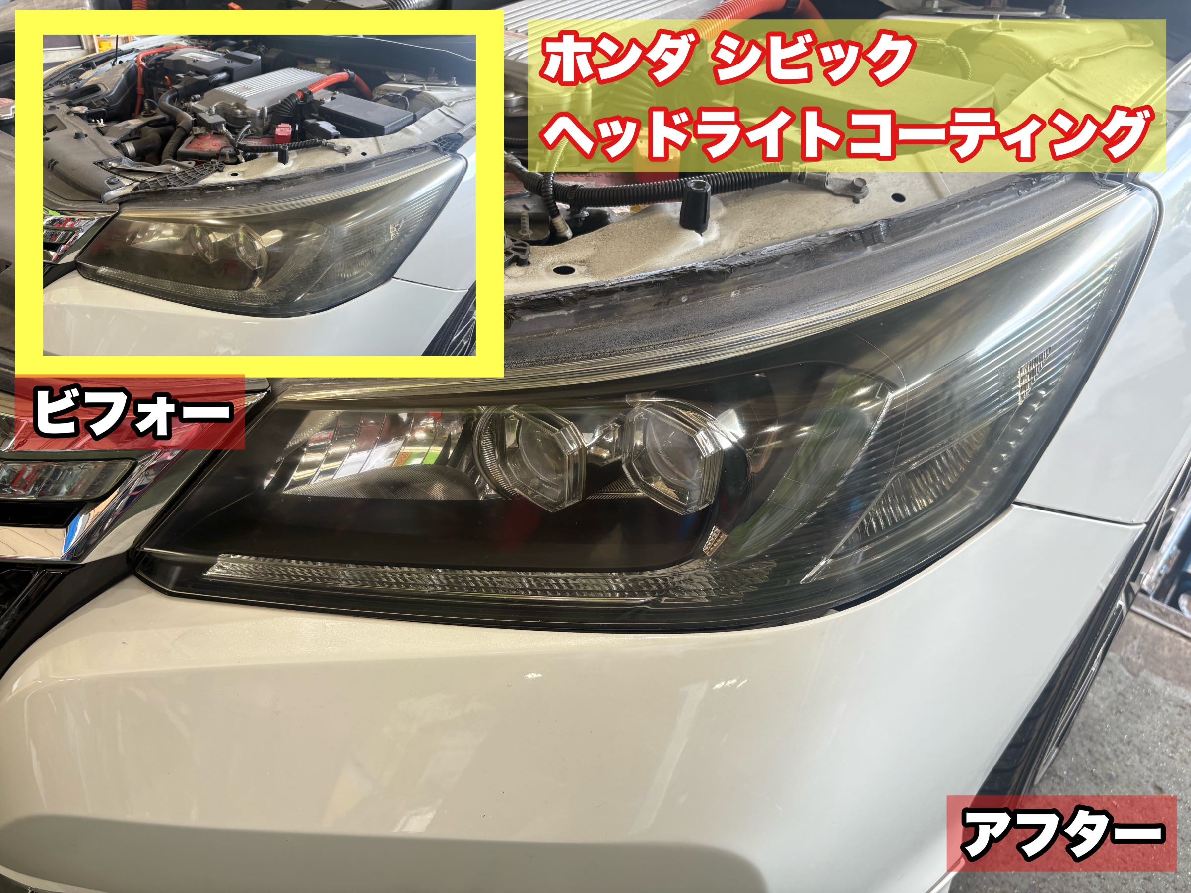 ヘッドライトコーティングで視界不良解消!!【ホンダ シビック】