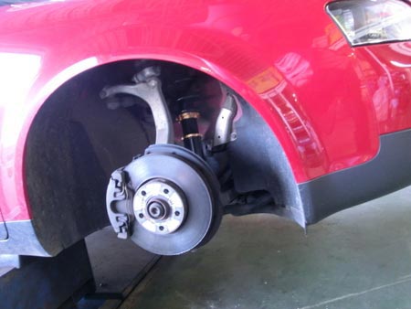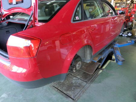 A4の車高調交換です。太田さん張り切りすぎて・・・無口です。