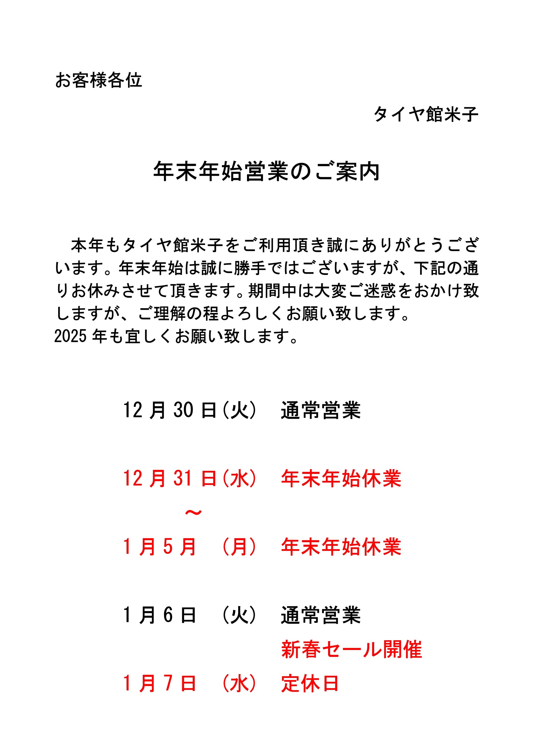 コクピット・タイヤ館年末大感謝キャンペーン開催!