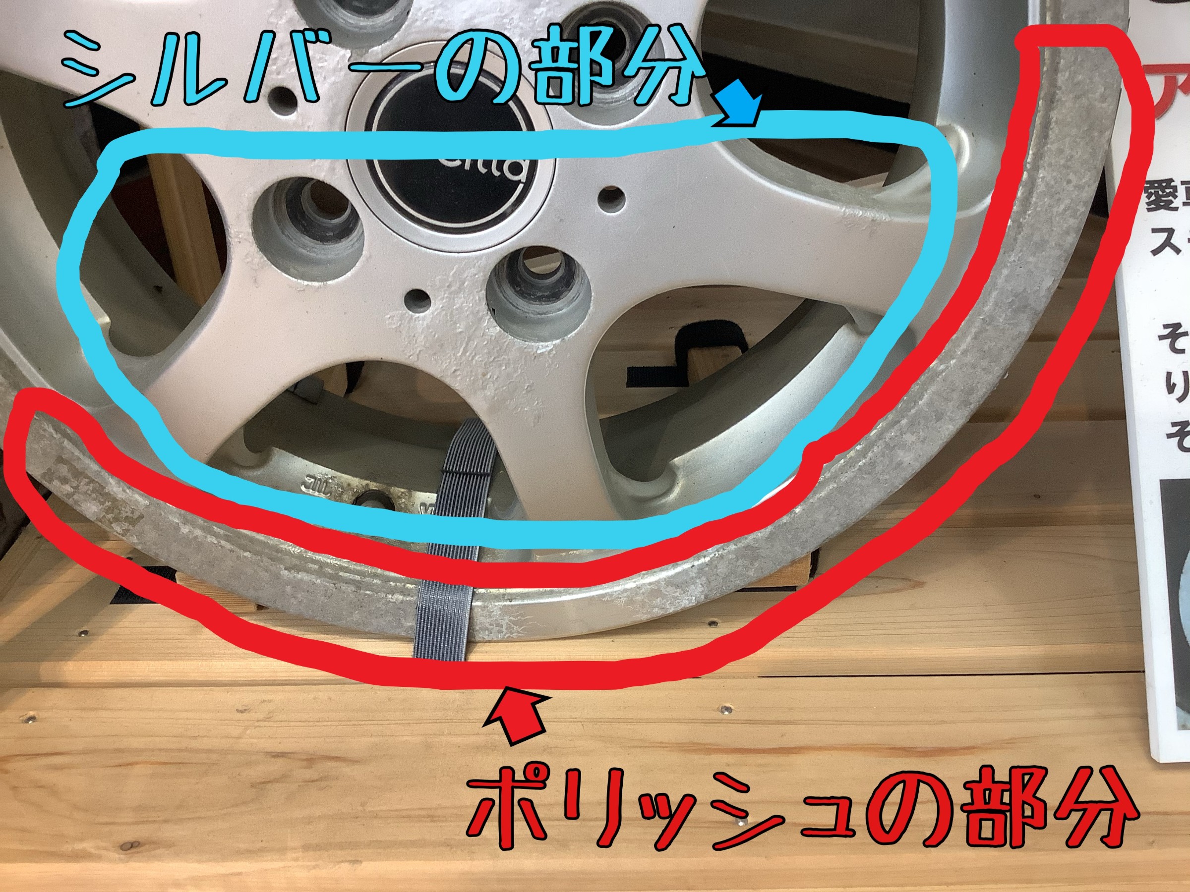 塗られた部分とポリッシュ面の腐食しやすさの比較ができるホイールがこちら↓