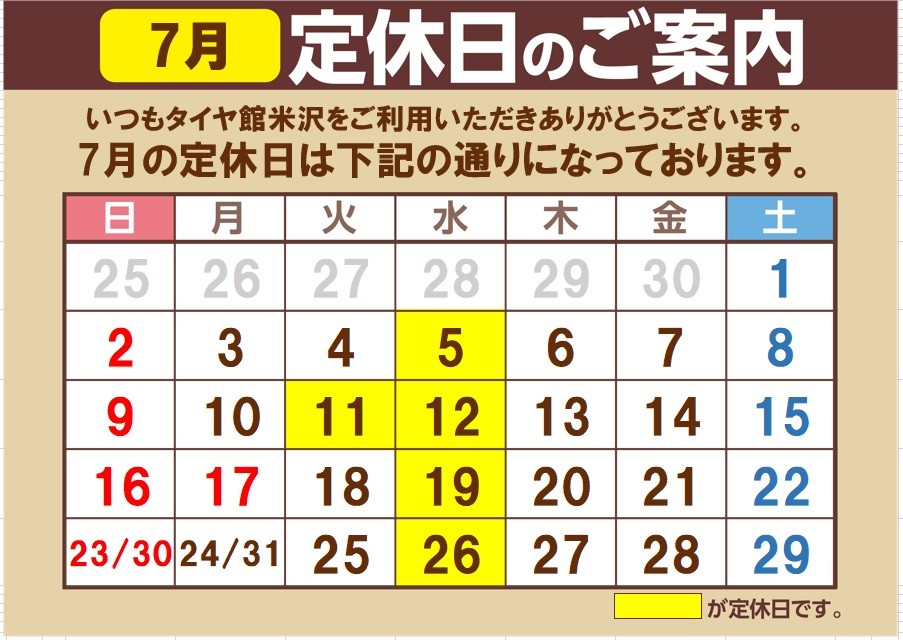 7月の定休日と営業時間のご案内です。 ポスト 2023年6月30日 いつも当店のWEBをご覧頂き有難うございます。 7月の定休日は、5日・11日・12日・19日・26日 になります。 7月の営業時間は AM10:30~PM7:00 になります。 カテゴリ:お知らせ