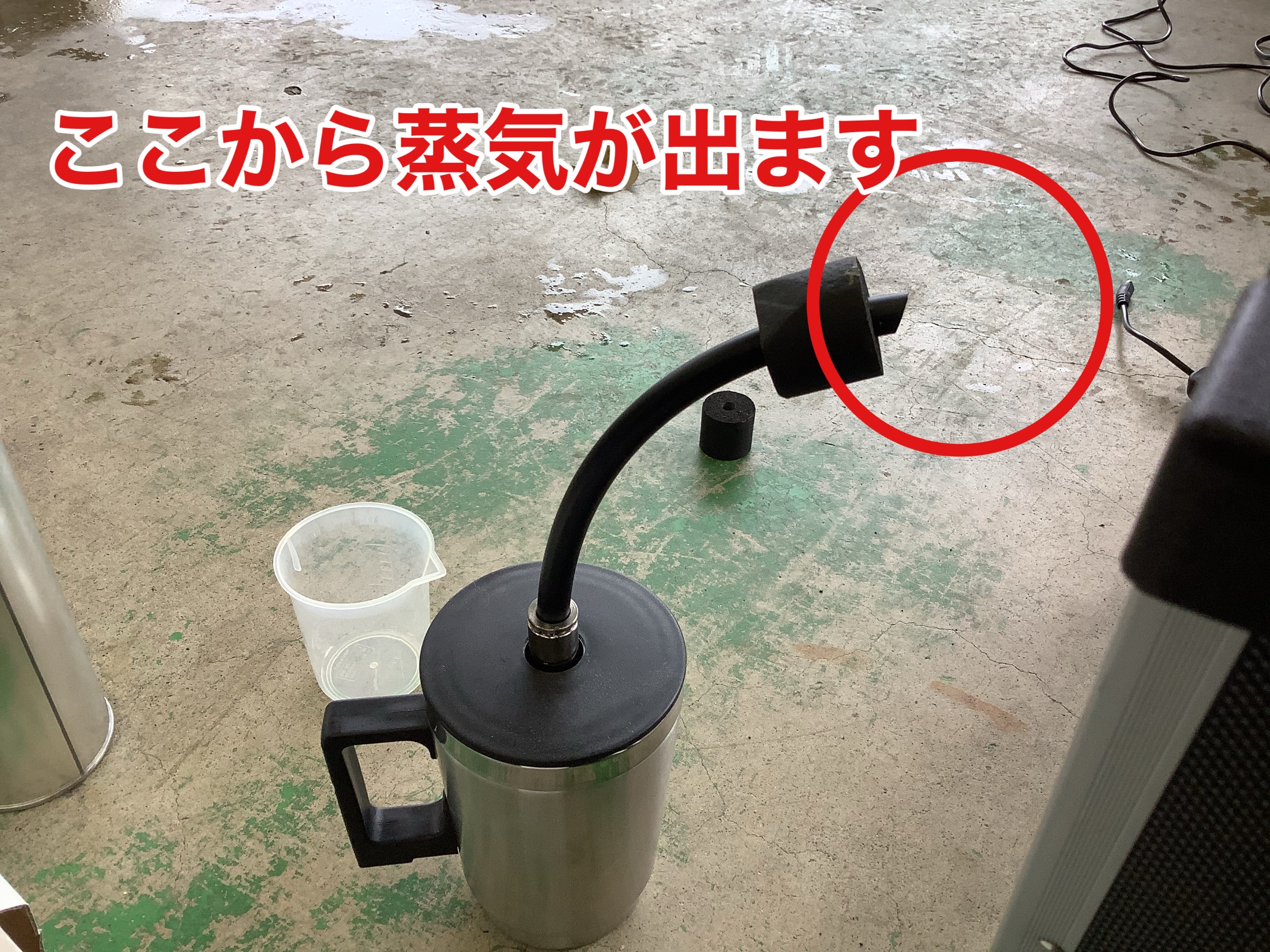 コーティングのための溶剤が蒸気になって出てくるのを、下処理をしたヘッドライトに直接当てていきます。