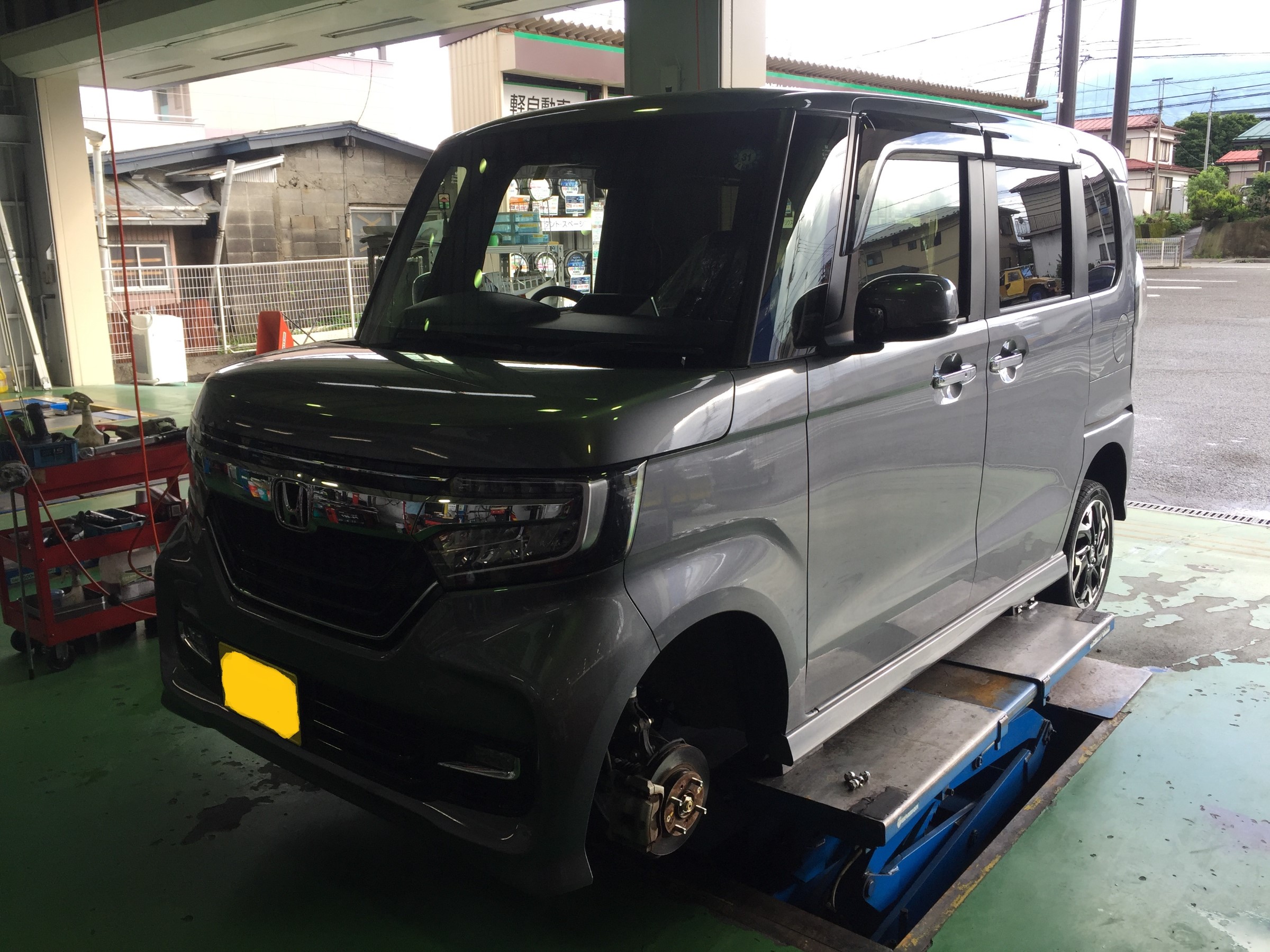 本日も左前のタイヤがパンクしてしまったお客様のN-BOXが入庫してきました。