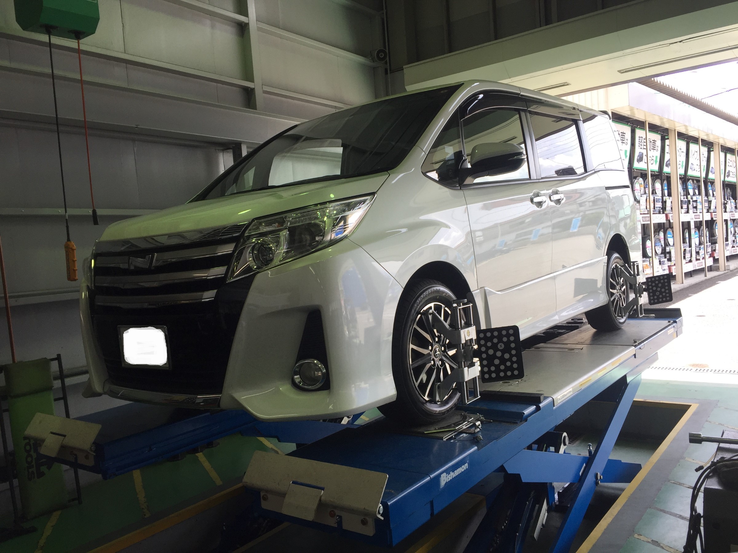 80系ノアタイヤ交換 205/60R16ルフトRVⅡ アライメント調整