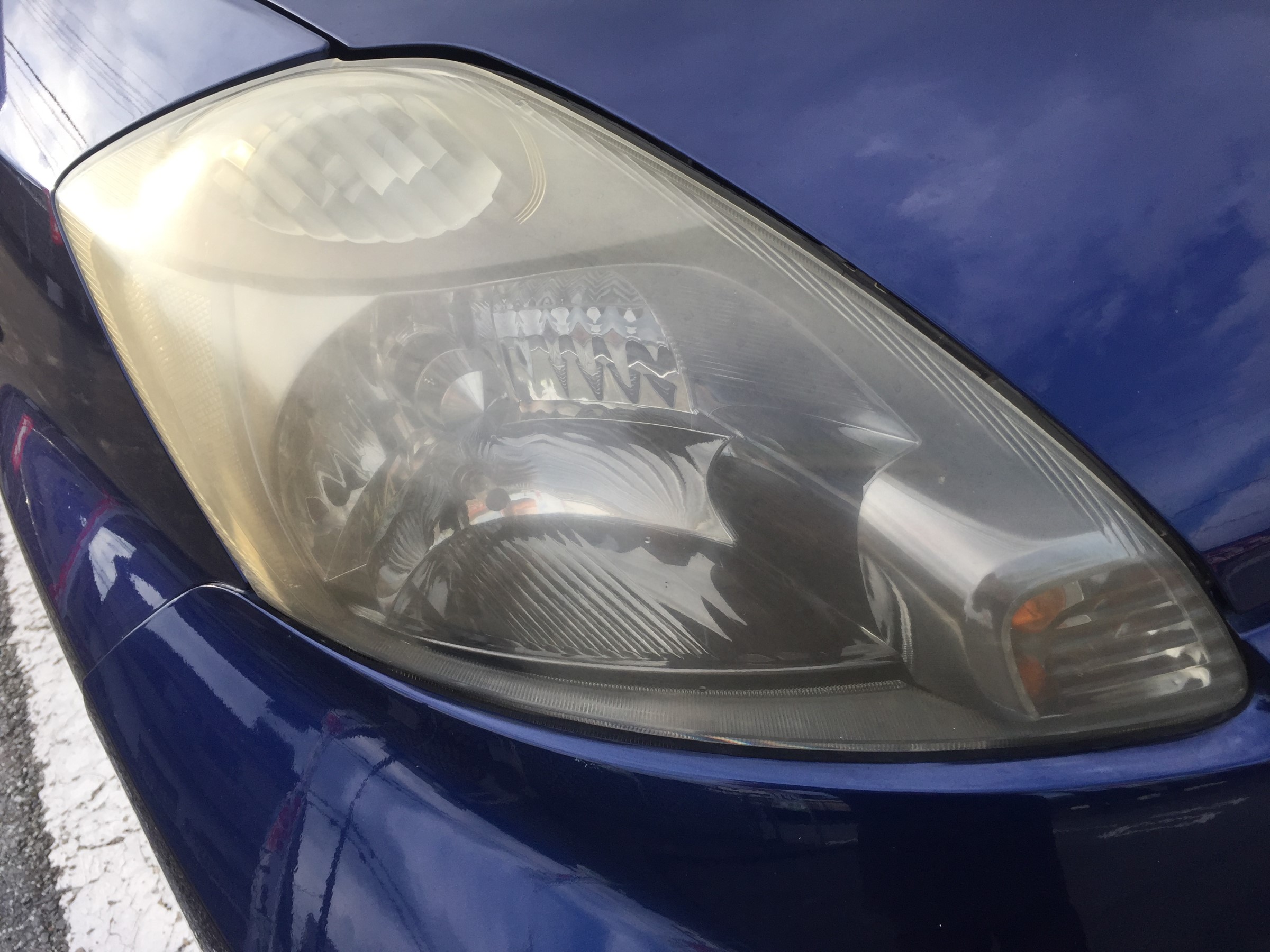 昔の車はヘッドライトはガラスで出来ていたため、あまり劣化は見られませんが、現代の車はヘッドライトがポリカーボネートという樹脂で出来ているので、長年太陽光や、紫外線や熱の影響でどうしても劣化してしまい、