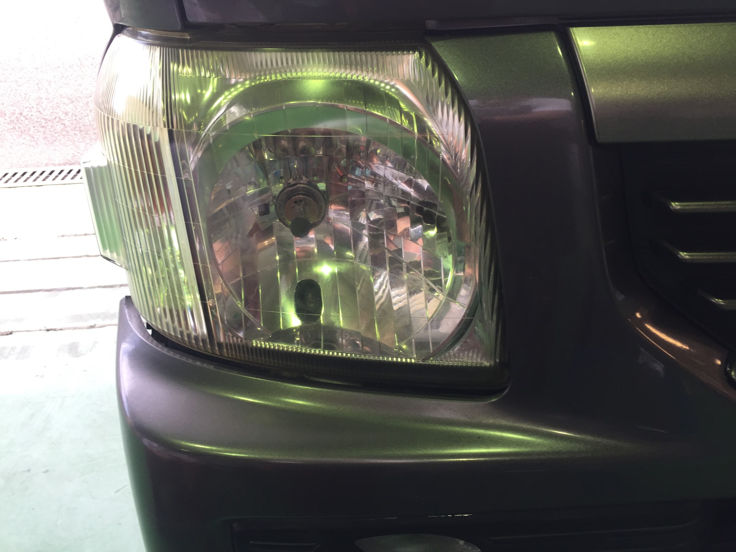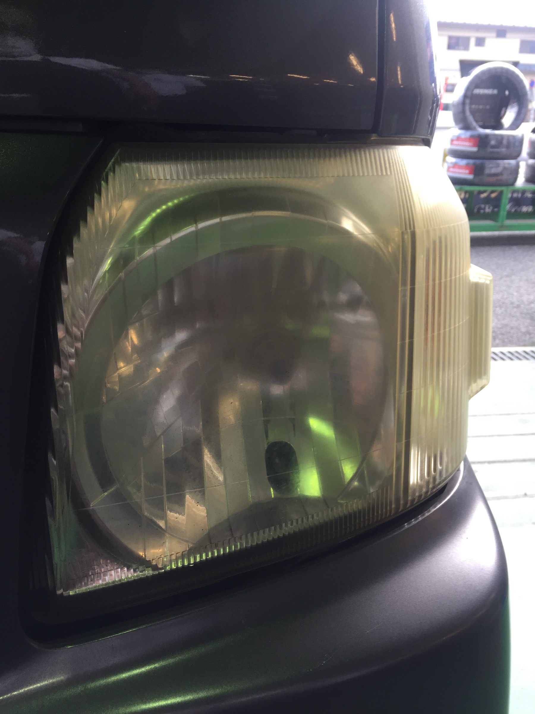 黄ばんできてしまうと、せっかくボディをキレイにしても車の見た目が古く見えてしまったり、車検時に光量不足で車検に通らない・・・なんて事も(゚Д゚;)