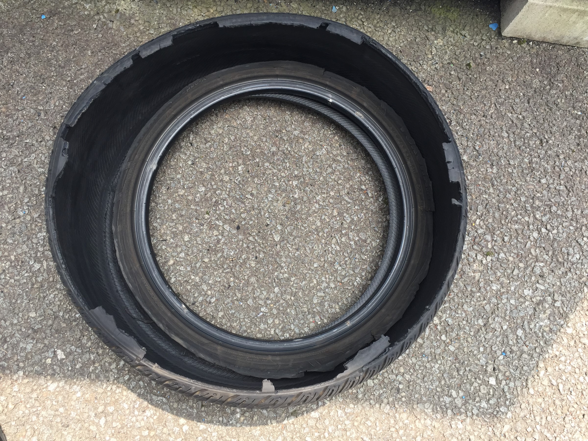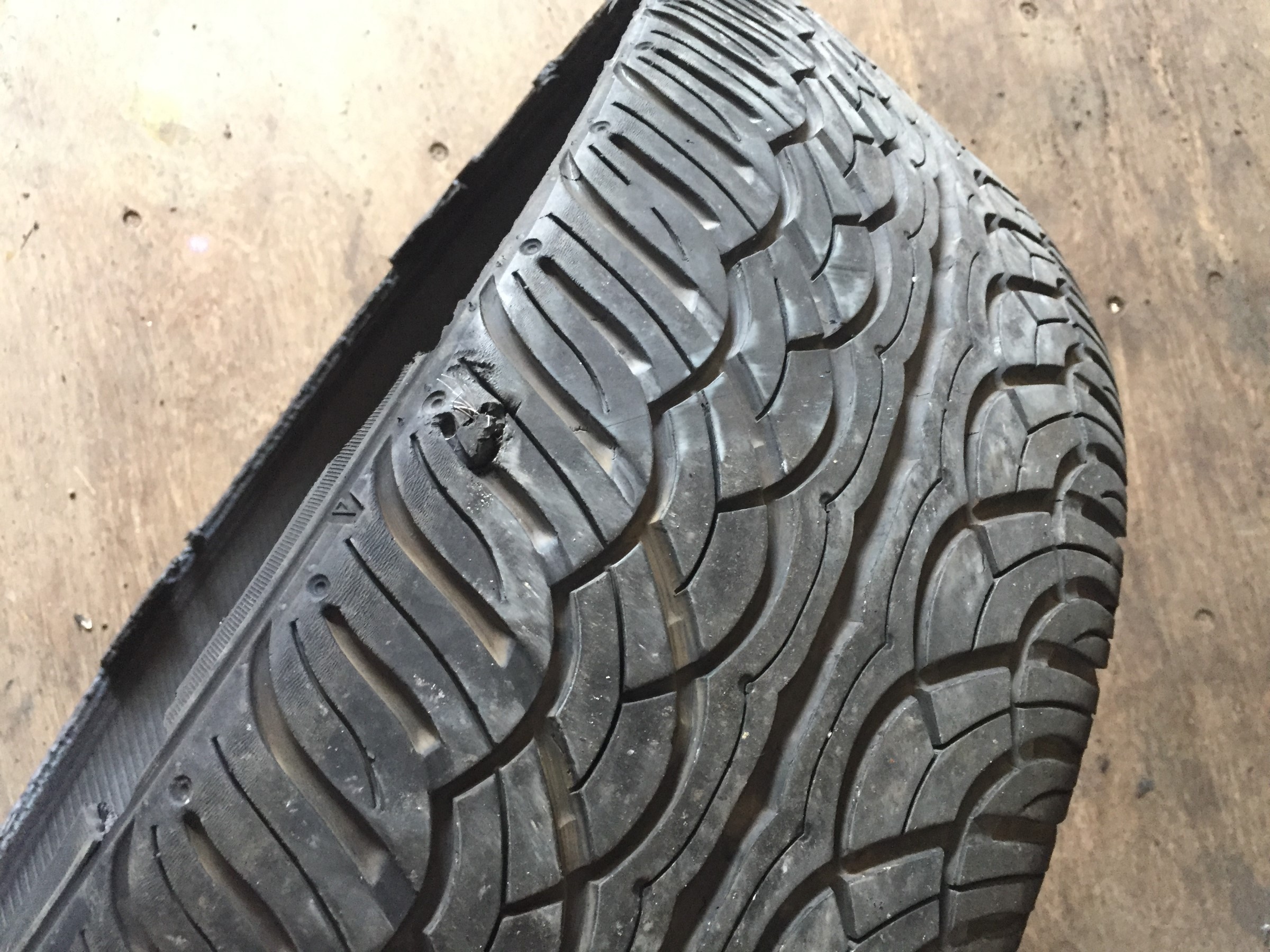 本日、タイヤのバーストでご来店いただいたお客様のタイヤをご覧ください。